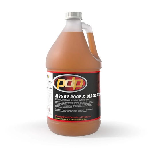 RV ROOF & BLACK STREAK CLEANER is a non-acid, high alkaline formula that acts as a black streak remover, road film, grime build-up and magnetic dust. Dilute with water up to 300:1!!! Simply use 1-2 ounces in a 5 gallon bucket half full of water. Use a flagged truck wash brush to apply. Then rinse with water. Then, observe your sparkling clean result!